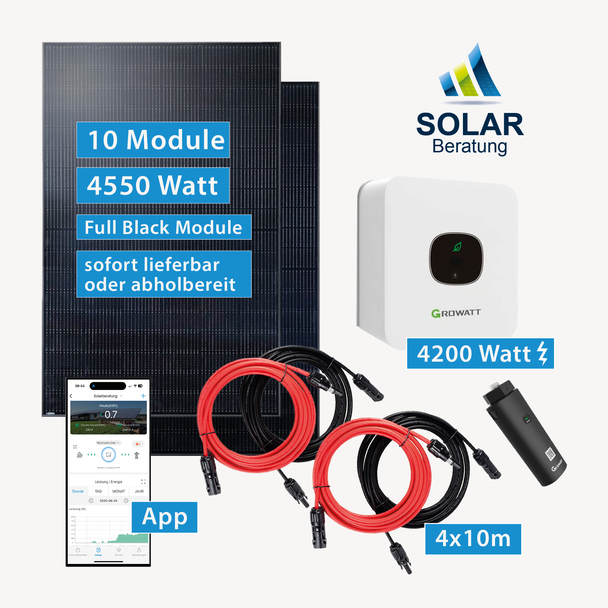 Komplettset: PV-Anlage 4.550 Watt mit Growatt Wechselrichter MIN 4200TL-XH und Solarmodul JA Solar 455 Watt